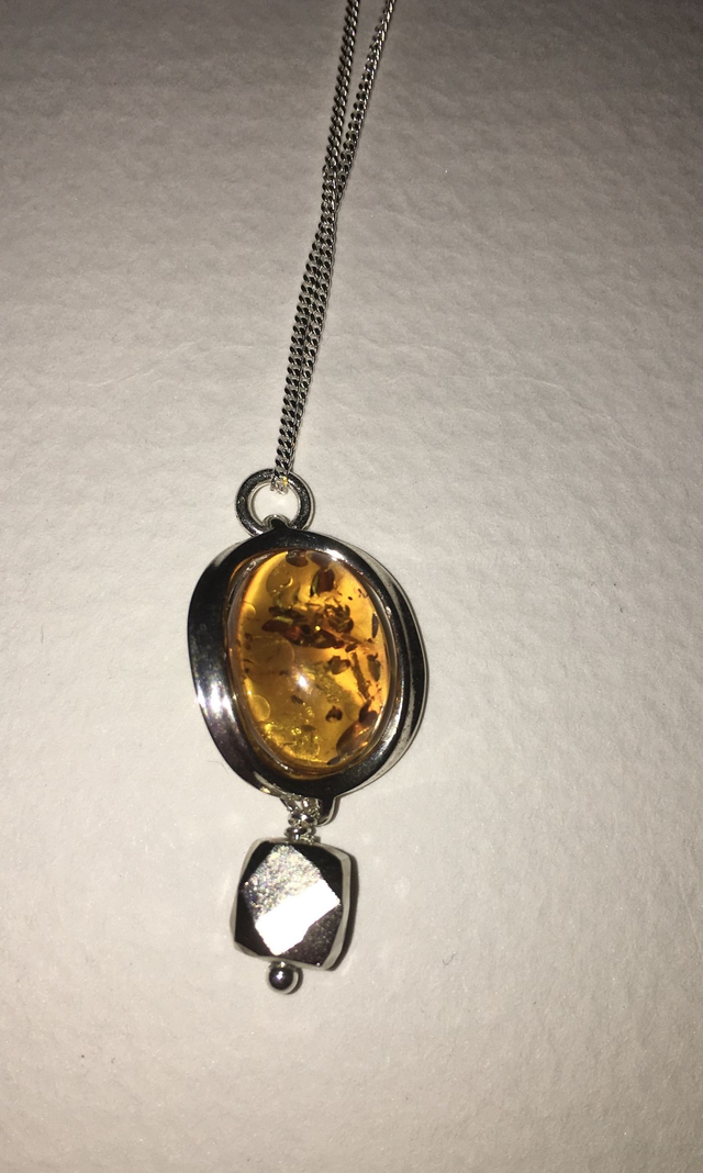 Oval 925 - Oval of Amber with Silver drop.