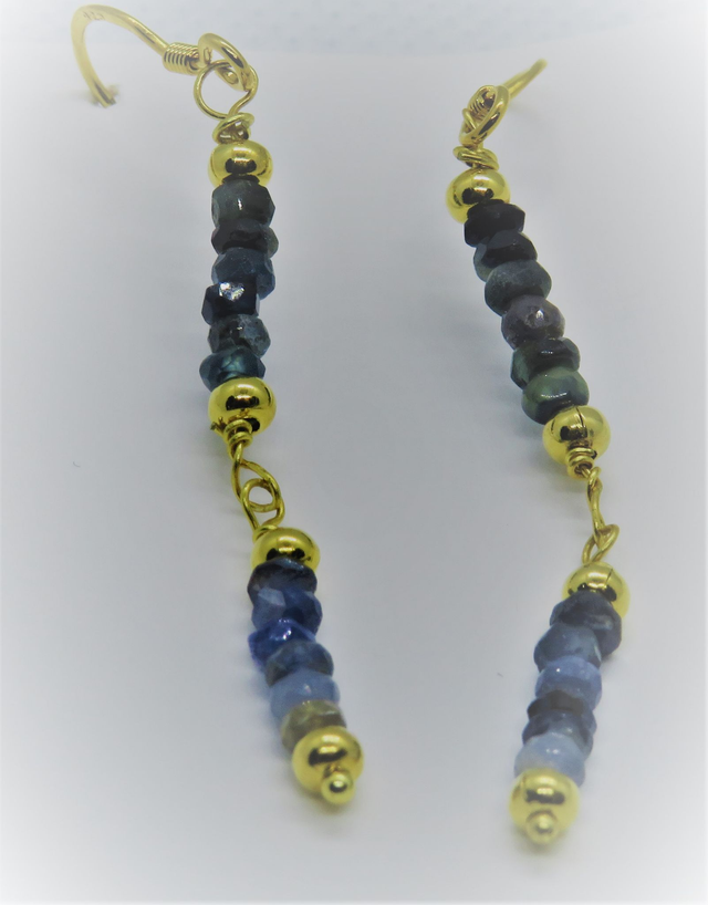 Gold plated Sterling silver earrings with gemstone beads. Choose from Sapphire or Emerald.