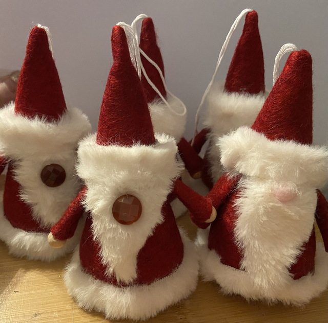 Hanging tree Gonks. Felt gonks with fur beards and trimmings. Comes in a variety of colours.