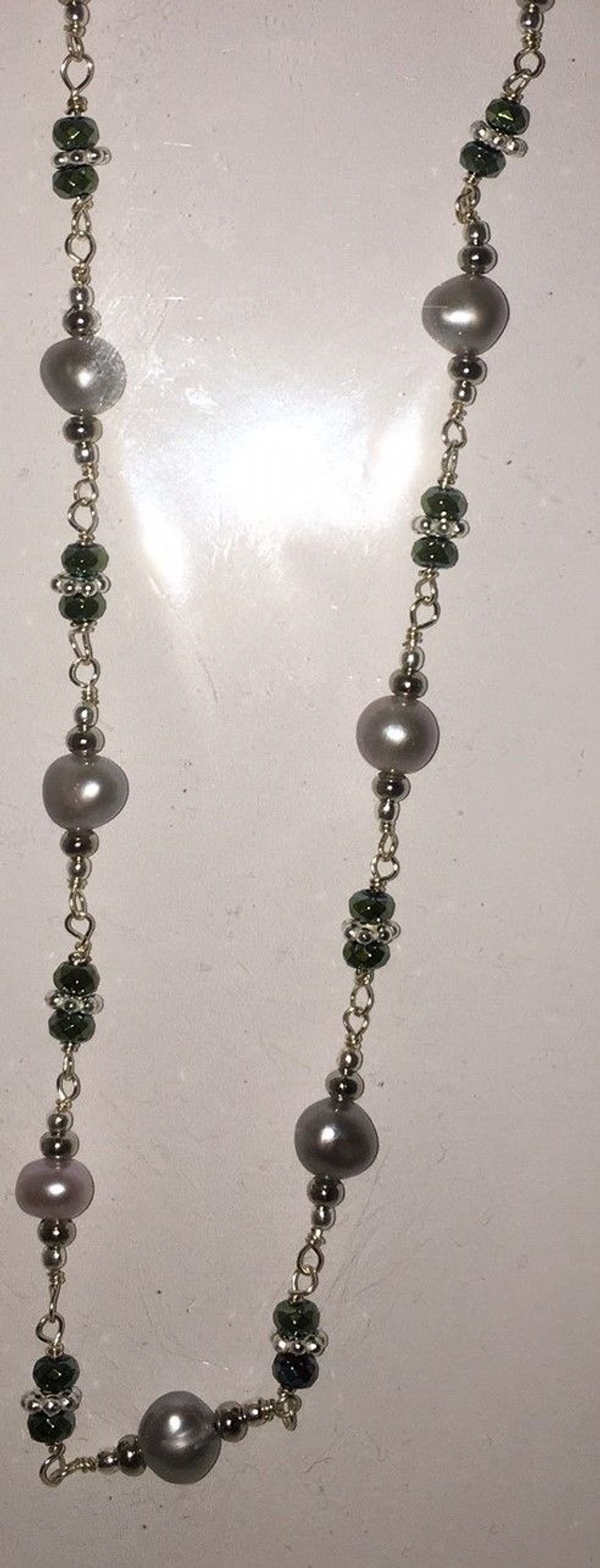 Natural gemstone necklace with pearls and Haematite gemstones.