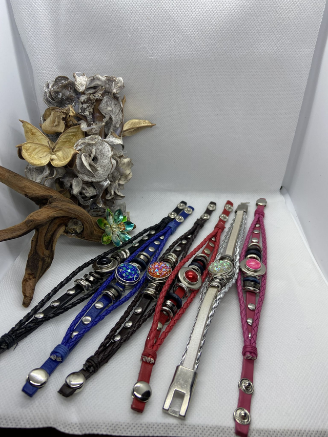 Leather style SNAP-IT bracelet. Just change the snap for a different design each day.