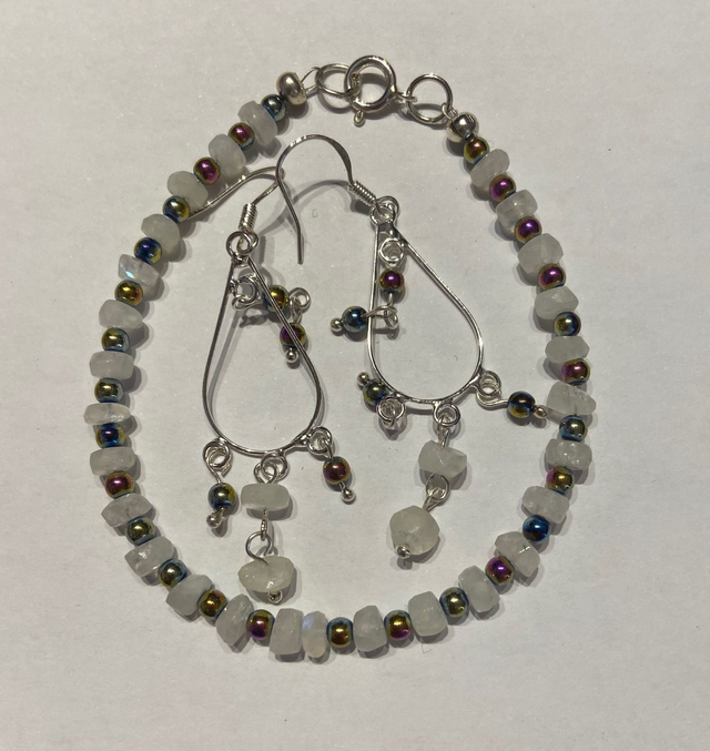 White Quartz & Coated Agate Bracelet and earrings set