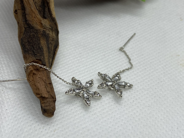 Thread earrings in silver tone with 5 long and 5 small crystals.